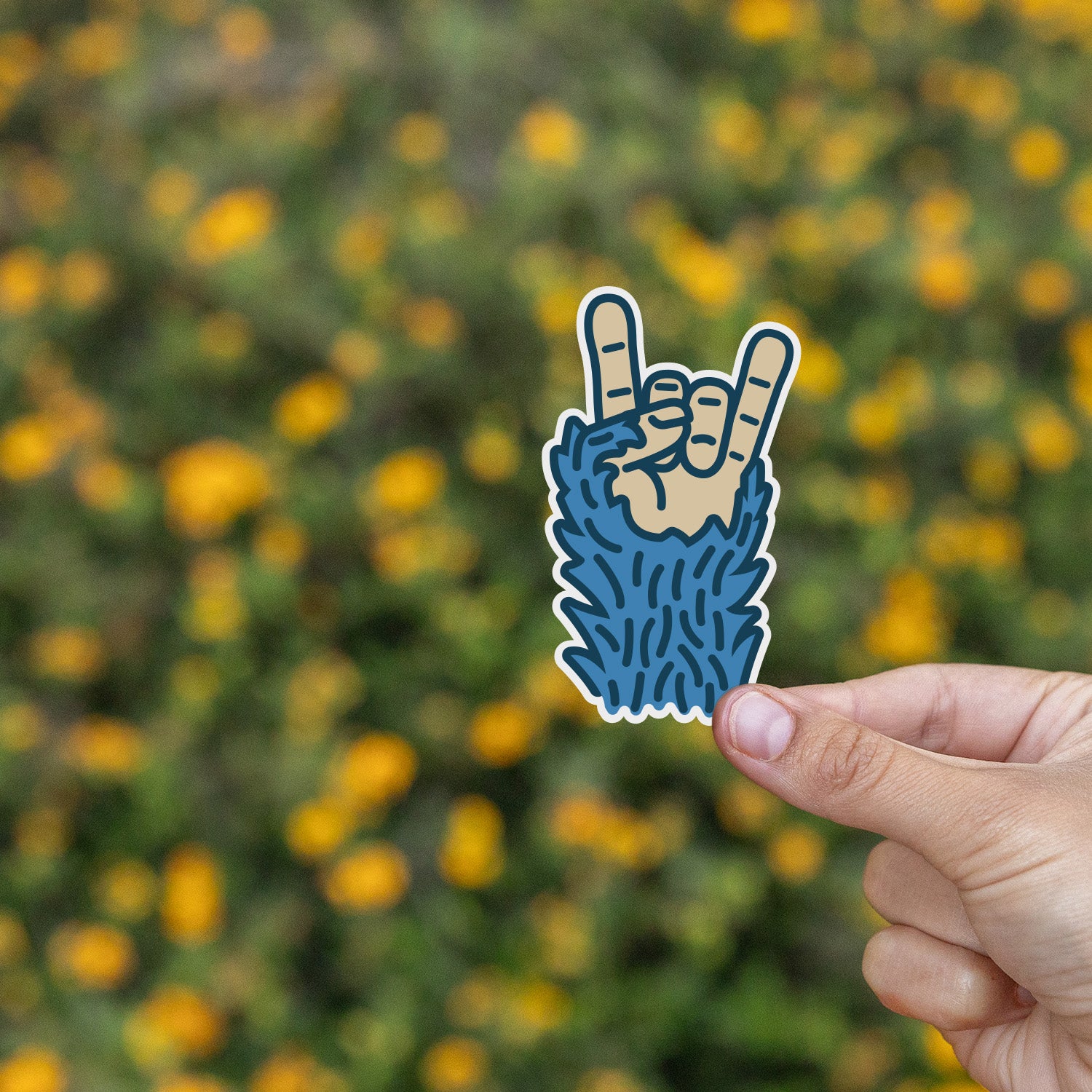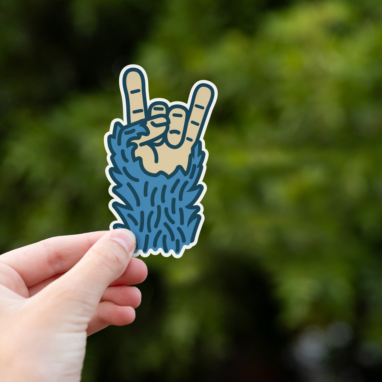 Bigfoot isn’t hiding — he’s backstage, shredding solos and stealing your groupies. This sticker proves what we’ve all suspected: Bigfoot is a rock star. With his furry blue hand throwing up the horns, he’s ready to bring some cryptid chaos to your water bottle, laptop, or cooler. Printed on tough, weatherproof vinyl, it’ll survive mosh pits, mud, and questionable campfire singalongs.