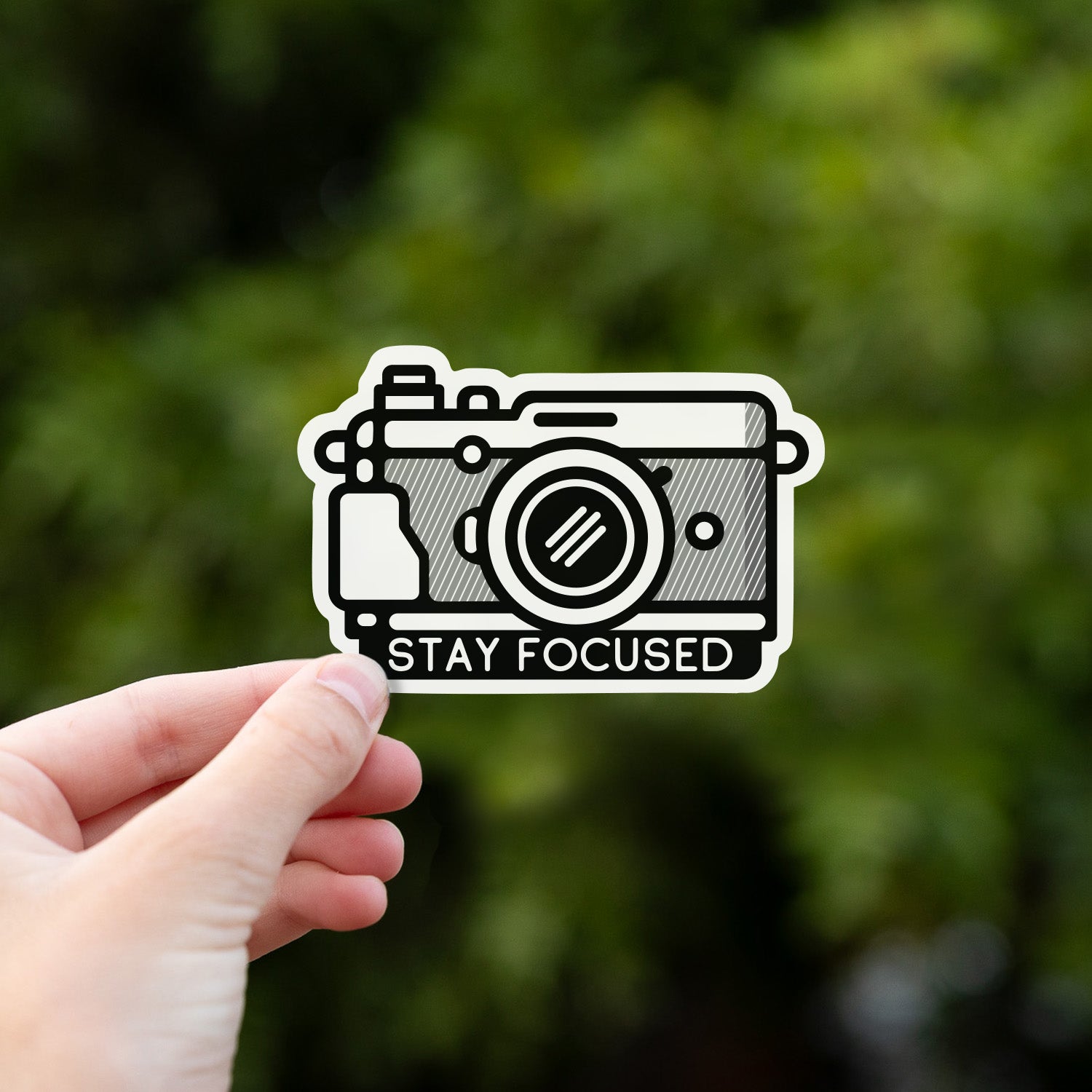 Part pep talk, part camera love. The Stay Focused sticker keeps things sharp whether you’re chasing the perfect shot, grinding through a project, or just trying not to lose track of your coffee. Clean black-and-white design, durable vinyl, and ready to stick anywhere you need a little reminder that focus gets results. Slap it on your laptop, water bottle, or camera case and let the world know you’ve got your eye on the prize.